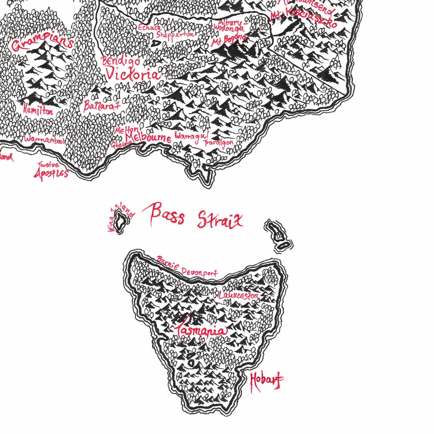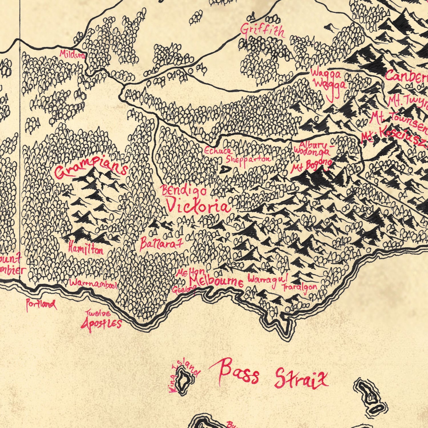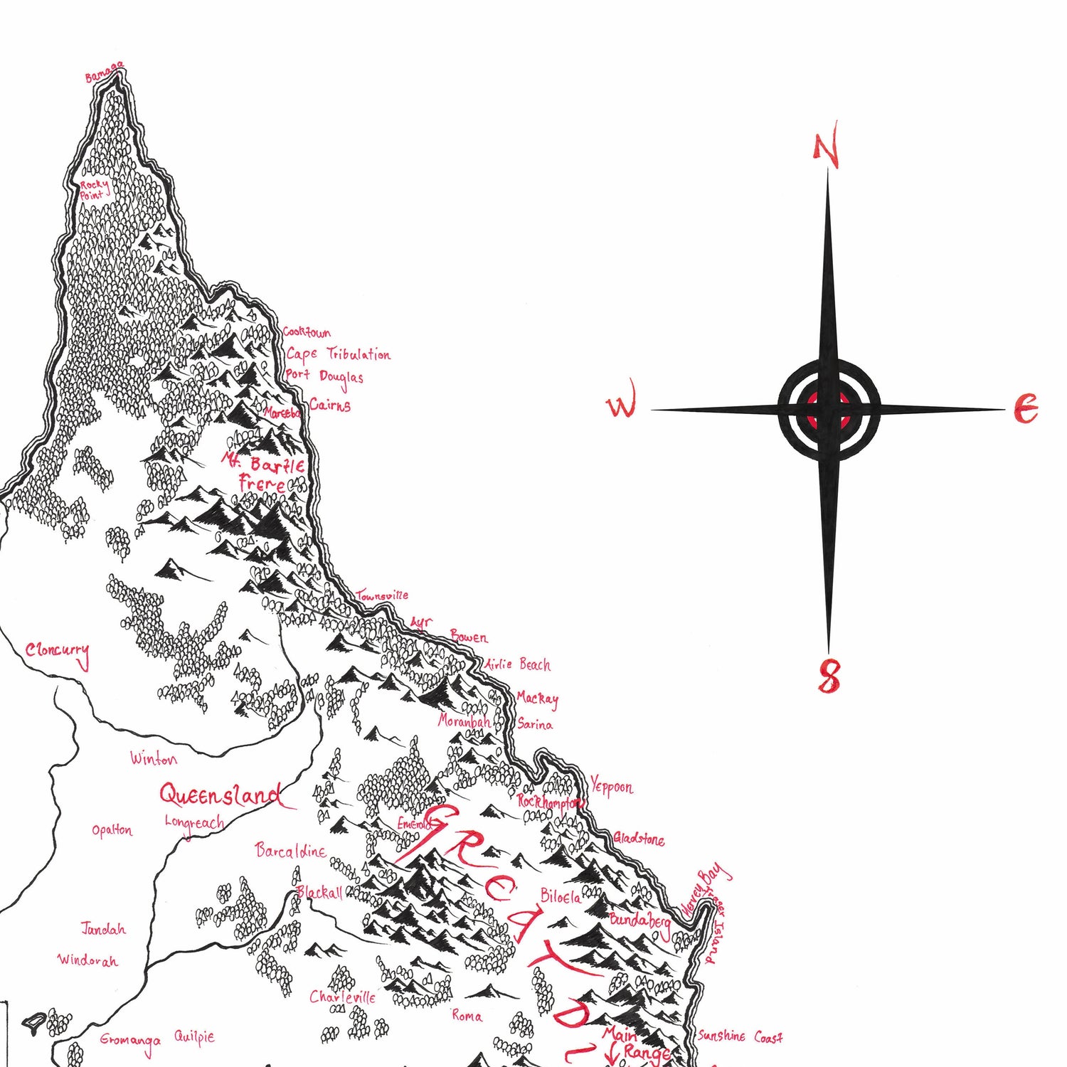 I draw all of my maps at the biggest size I sell, which is A1. Therefore, the clarity is perfect.